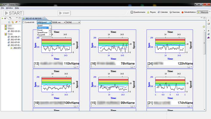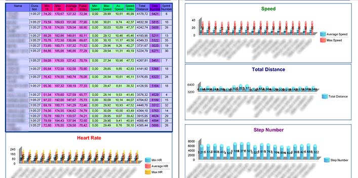 - motion sensors (speed, acceleration, total number of sprints, covered distance, step number, motion analysis)